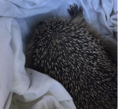 'Red' - a small hoglet out in the day, weighing just 346g, severely dehydrated with internal parasites. Once again, quick thinking from the people who discovered him, followed by my swift rescue then over to the volunteer rescue meant he stood a chance of survival. Sadly though, little 'Red' didn't make it - the internal infection was just too severe for him to fight, even with medication, and he passed away pain-free and comfy.
